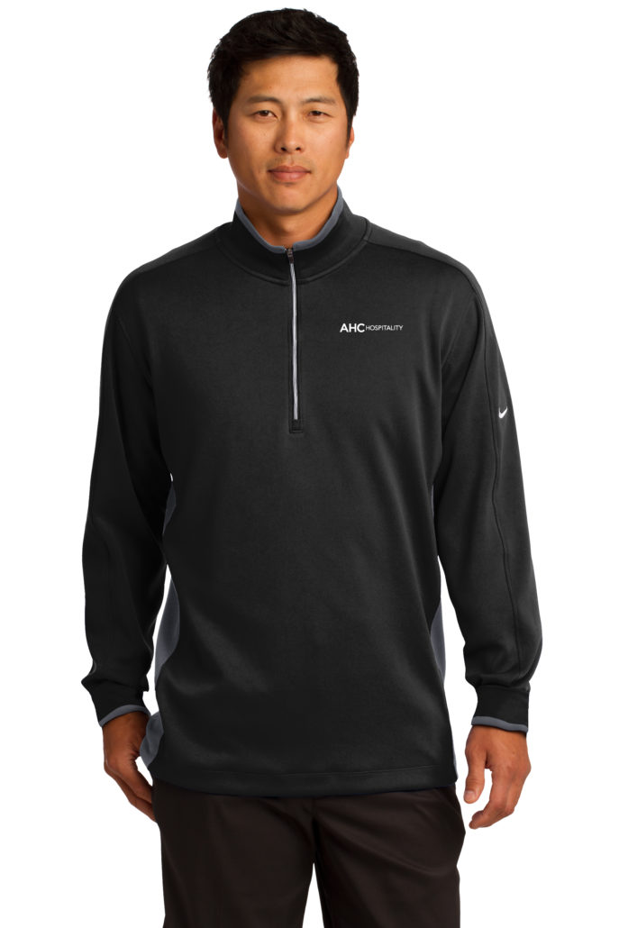 A boldly striped inner collar and reverse coil zipper give this cover-up an edge. Of course, it also performs with Dri-FIT moisture management technology. The design features a flat knit collar and cuffs and an open hem. The contrast Swoosh design trademark is embroidered on the upper left sleeve. Made of 8.3-ounce, 100% Dri-FIT polyester.