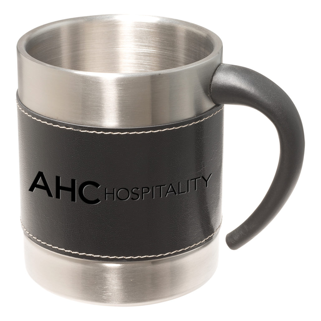 • 10 oz. (295 mL) double-wall stainless mug with soft faux leather sleeve.